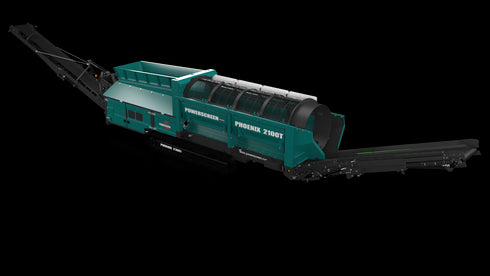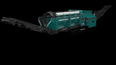 The Powerscreen® Phoenix 2100 is mid sized 2 way split mobile trommel screen designed for quick setup and high throughput. Features of the Phoenix 2100 include a large screen area, low maintenance, 4 wheel friction drum drive system, load sensing kick-out control system on the feeder conveyor and hydraulic folding onboard conveyors. The Phoenix 2100 has been designed to work in: top soil, wood chips, compost and recycling applications.